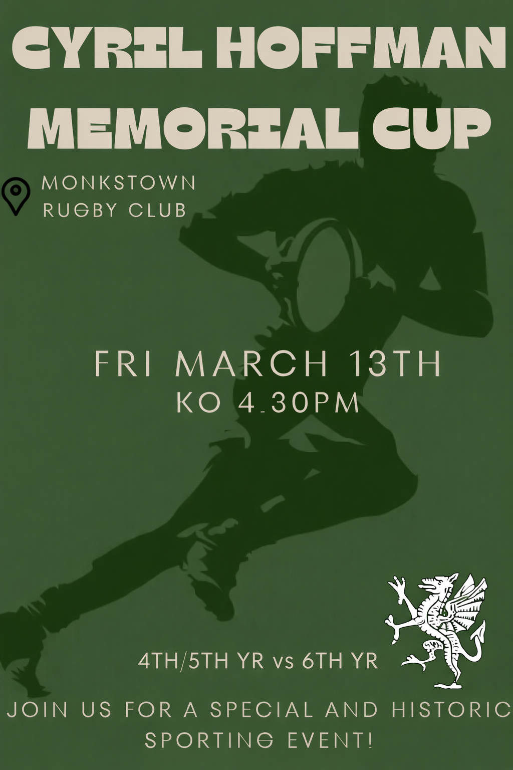 The Cyril Hoffman Memorial Cup, formerly The All-Black Shield, will be played in Monkstown Rugby Club, on Friday the 13th of March at 4:30pm. In memory of Mr Hoffman, a huge advocate for sport in Sandford Park School and a proud Kerry and Munster Rugby man, the fixture will highlight the impact Mr Hoffman had, not only on sport in Sandford, but his impact on the school over many decades. An intriguing contest between a combined 4th/5th year team and the 6th year team awaits!