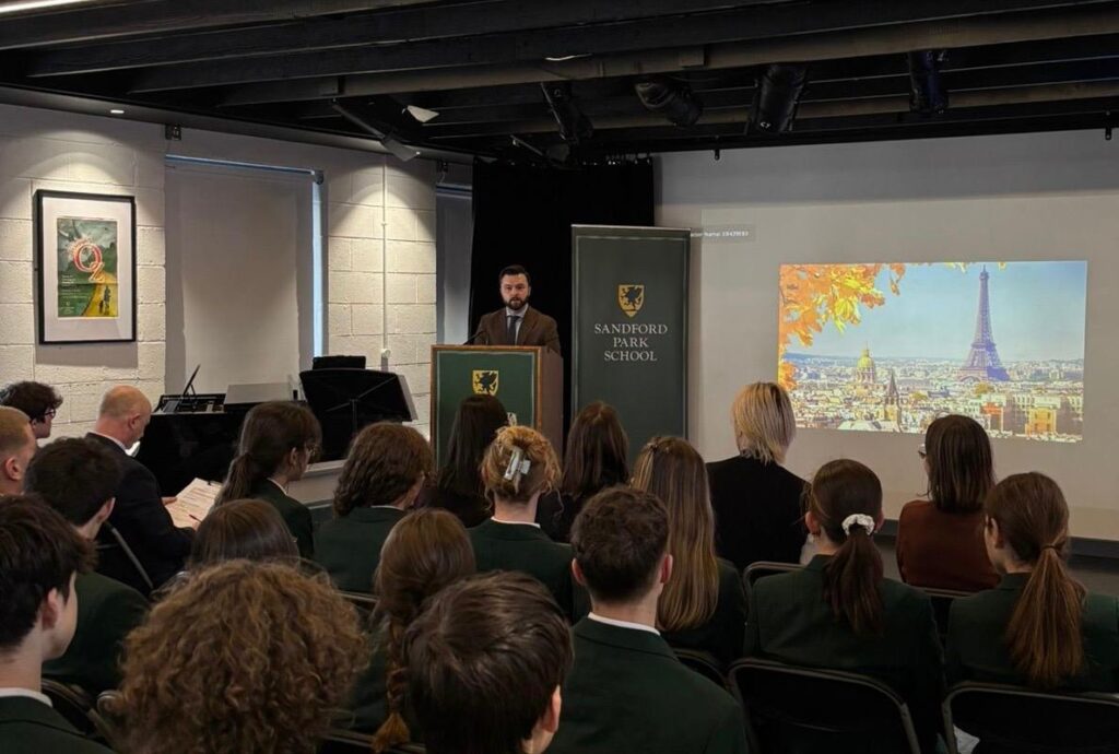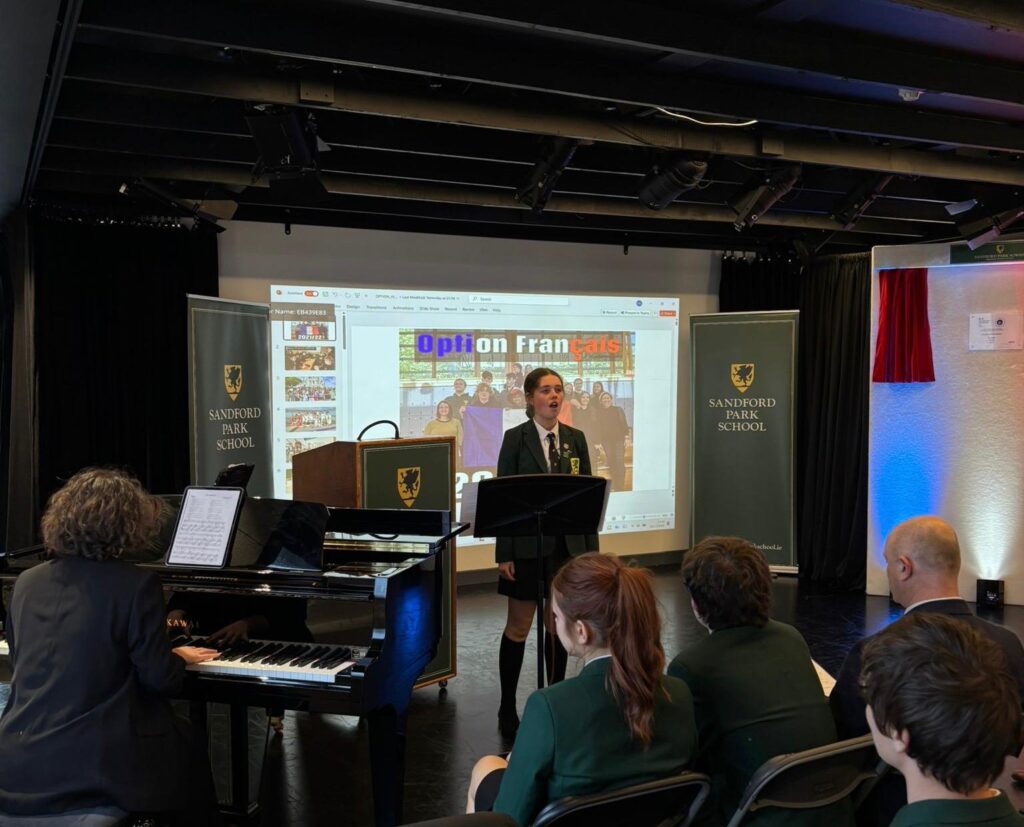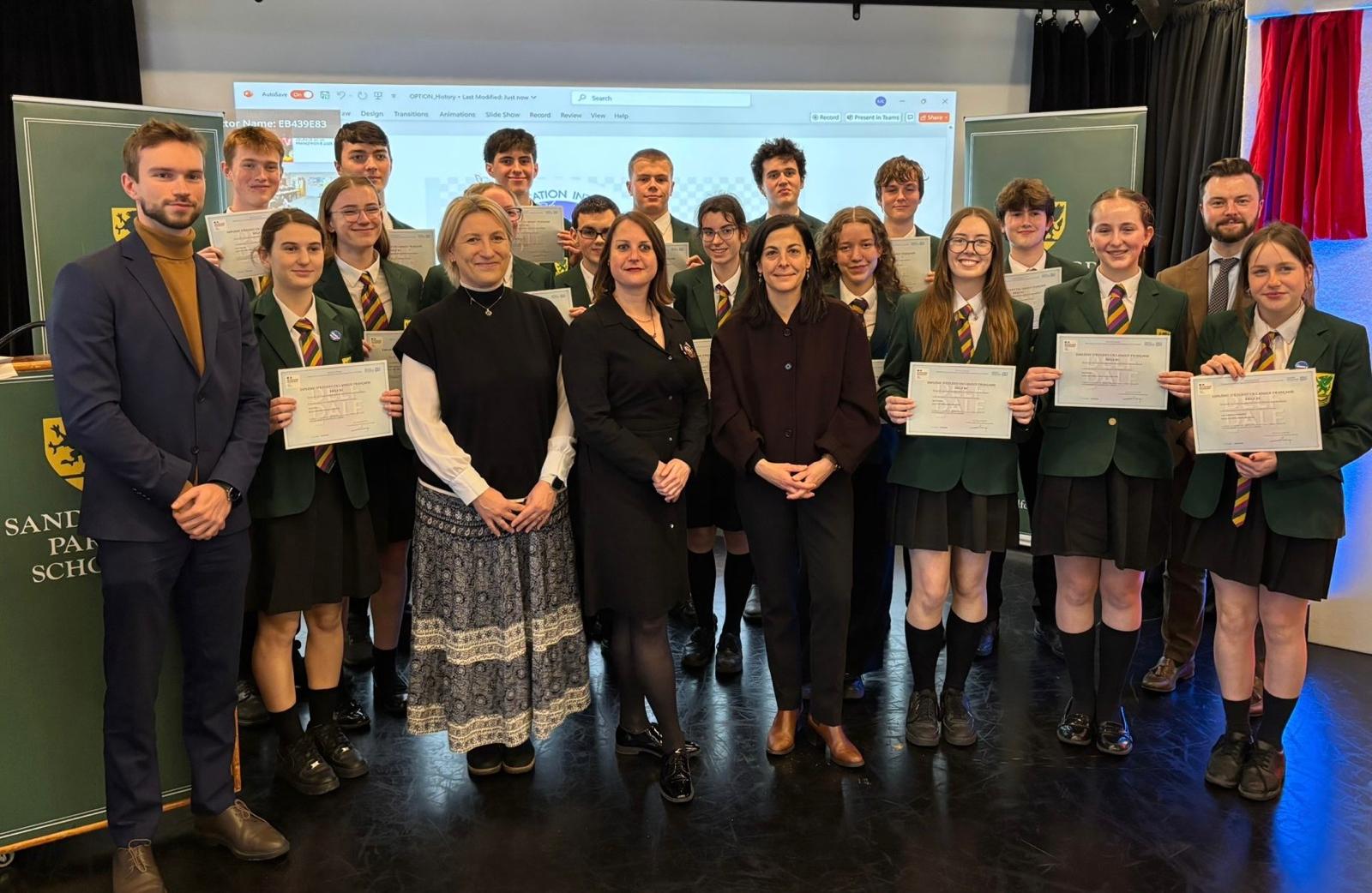 On Friday, 05/12, the school held a special ceremony during which H.E. Ms Céline Place, the French Ambassador to Ireland, unveiled the plaque celebrating the awarding of the prestigious Label FrancÉducation to our Transition Year Option Français programme. Students and staff then marked the occasion with a celebratory pizza party.