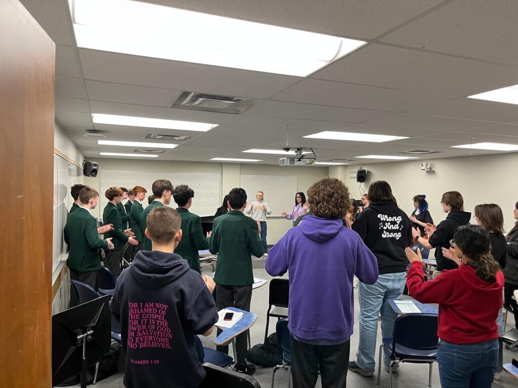 We began our trip with a successful performance at Laurier University, where students also participated in composing and conducting workshops and learned a new piece alongside other schools. The day concluded with a wonderful performance of & Juliet, followed by a well‑deserved meal to round off an excellent start to the tour.